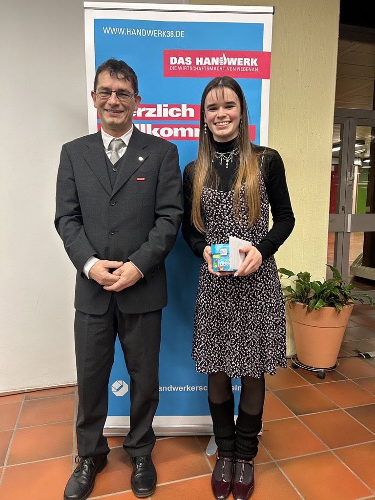 Foto 2: Prüfungsbeste Lisa Stein mit Kreishandwerksmeister Alexander Stein